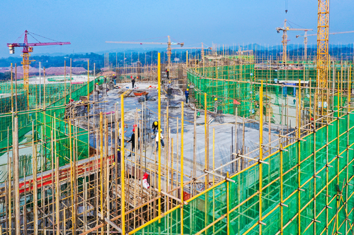 四川新闻网消息 2022年11月15日,泸州市合江县江北文化综合体建设项目建设现场,工人们正抢抓晴好天气加紧施工,决战四季度,大干一百天,继续吹响拼经济、搞建设的“冲锋号”。