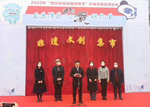 四川新闻网消息(汪诗杰 程海英) 老卤匠肖鸭子、荔枝酒、古蔺手工面、武天富水豆豉……12月8日,2022年“四川非遗直播购物节”泸州市系列活动之龙马潭区非遗·文创·特色产品直播购物节系列活动启动仪式暨展演活动在“这有光”24小时不打烊温度文旅街区举行。伴随一声礼炮,泸州市委宣传部副部长、泸州市文化广电旅游局党组书记、局长李凌宣布活动正式启动,并与在场领导一同开启非遗集市之门。