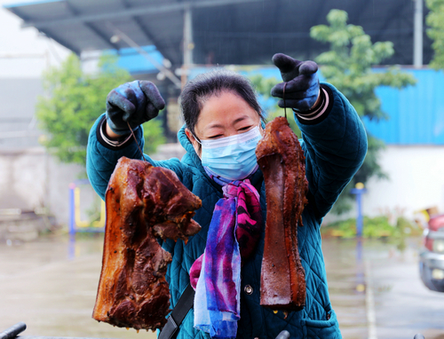 “我去年和今年都是在这里熏制的,这里离我家很近,无烟熏制既方便又环保,价格合理,而且熏制出的腊肉、香肠色泽金黄、油润,口感也好。”鱼塘社区居民李成虎提着刚刚熏制好的18斤腊肉高兴地说。