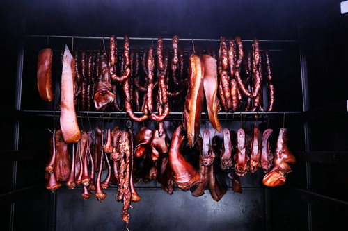 “一台环保熏制箱机一次可以熏制500斤左右的腌腊制品,每箱熏制3个多小时。”熏制点负责人朱玉才介绍说,腊制品环保熏制箱机主要采用松柏、枝丫、木屑等材料熏制,一旁的烟尘处理装置同时净化熏制产生的水、汽和烟尘,既有效解决了油烟污染,让制作过程更环保,又可改善空气质量,降低消防安全隐患。