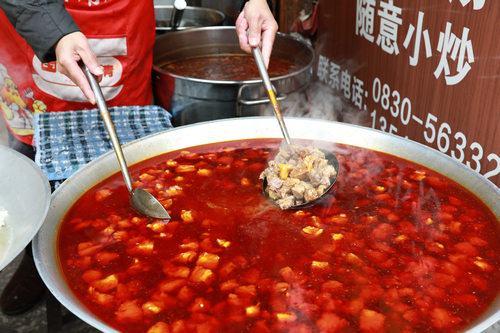 在合江县尧坝古镇,随处可见红汤羊肉的招牌,一碗浓香馥郁的羊肉汤,是合江人温暖过冬的妙招。