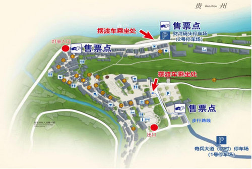 内部公交车线路:太平古镇景区停车场--景区广场---纪念标--太平大桥---太平渡渡口公交站---纪念碑大桥桥头---财湾码头(2号停车场)。