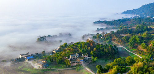 四川新闻网消息 1月7日,当今年的第一个冬日暖阳与合江县笔架山下的赤水河流域亲密接触后,浓浓的晨雾便铺天盖地地洒满了山涧的每一个角落,青山丛林、田园农舍如春天般的秀美展现在眼前。(供稿:合江县委宣传部 李贵平)
