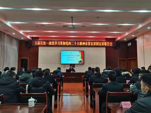 四川新闻网消息 1月11日,学习贯彻党的二十大精神市委第七宣讲团古蔺县统一战线报告会在古蔺县西区会议室举行。泸州市委统战部常务副部长许仁兵作宣讲报告。