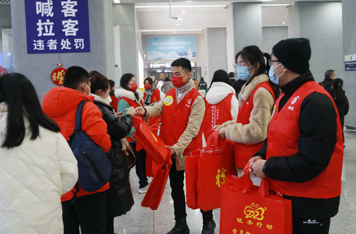 新年将至,为让返乡旅客一下高铁就感受到家乡的温暖和泸州人民的热情,泸州高铁站精心为返乡旅客准备了暖心福袋以及乘车指南,并调集客运专线,最大程度缩短旅客回家的路程。“我一下高铁就看到有很多志愿者在送暖心福袋,快过年了,回来看到这一幕感觉很温暖、很贴心。”返乡旅客龙辰辰说。