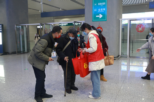 除此之外,在高铁站进站口和出站口还专门设置了志愿服务岗,10余名假期返乡的大学生主动加入到志愿者行列,来到高铁站,听从工作人员的安排,分配到了各自的岗位。从旅客安检进站、安全劝导、信息咨询,到客流引导、秩序维护等工作,志愿者们各司其职、热情服务,忙碌的身影成为了站内一道温馨的风景线。
