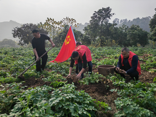 四川新闻网消息 时下,秋洋芋迎来收获的时节。1月12日,在泸县海潮镇红合村的高标准农田水稻制种基地里,海潮镇纪检干部、新时代的文明实践者们身穿红马甲,前来体验丰收的喜悦:一个个饱满、匀称的秋洋芋从地里被翻刨出来,摆满了地头。