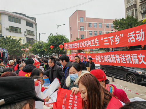 今年,方洞镇把“三下乡”活动与新时代文明实践、乡村振兴工作等结合起来,以新春送祝福为契机,联合全镇普法、文化、卫生健康、安全环保、农技志愿者、人大代表开展了科技文化卫生“三下乡”志愿服务活动,为基层发展办实事办好事,把文明新风吹到群众心里、把惠民服务送到群众心坎,也把浓浓年味送到各家各户。(供稿:泸县融媒体中心 曾佐然、郭莉 )