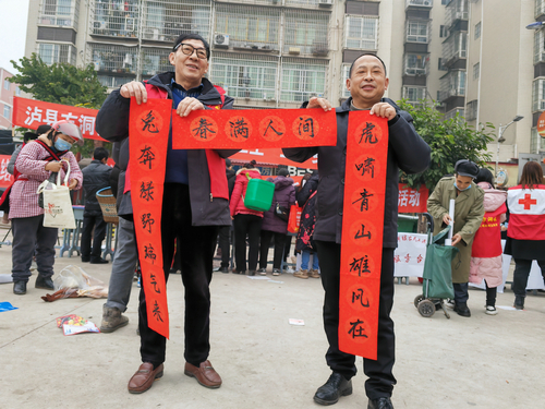 “开心,每年年底太阳城广场都会免费发放春联,现场还可以了解卫生健康、安全知识,非常实用。”向阳社区居民黄敏高兴地说道,春节是中华民族的传统节日,每年都少不了贴春联,前来索要春联的群众络绎不绝。