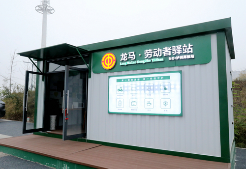 2022年初,“龙马·劳动者驿站”正式启动建设,驿站配备卫生间、休息桌椅、空调、饮水机、微波炉、电冰箱、应急药箱等,还专门提供电瓶充电服务,方便外卖骑手、快递小哥等使用。