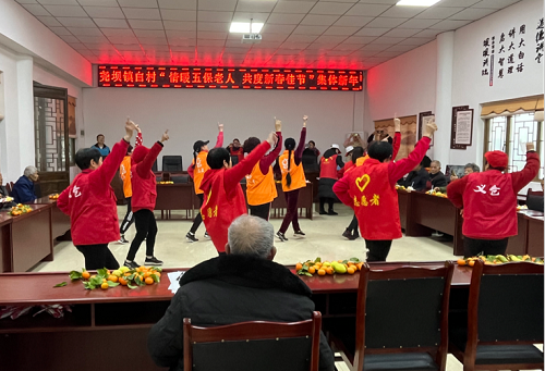 “大家按排练队形站好啦,音乐,开始!”统战成员陈爱平一边招呼大家,一边翩翩起舞,这支由统战志愿者组成的社区舞蹈队,为活动拉开了序幕。“现在我退休了,因为兴趣就组建了这支舞蹈队,今天能跟五保老人一起过节,我感到十分高兴。”陈爱平说。