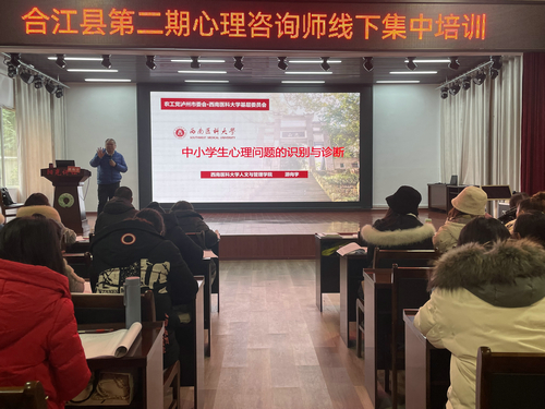 四川新闻网消息 “班上有个孩子上课老睡觉,是心理问题吗?”近日,农工党西南医科大学基层委员会主委、西南医科大学人文管理学院心理学副教授游向宇到合江县特殊教育学校,为合江县中小学专兼职心理咨询教师开展线下培训。