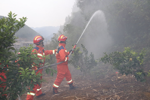 “值班室,水落村3组山上发生森林火情,请求街道增援并组织扑救。”