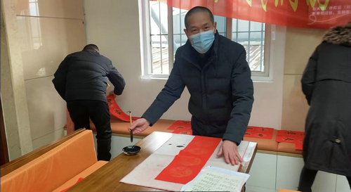 “福星高照全家福,春光耀辉满堂春”“玉兔迎春春入户,金莺报喜喜盈门”……书画家们笔锋遒劲有力,字迹行云流水,一句句喜庆吉祥的新春祝福跃然纸上,潇洒飘逸,尽显神韵;一副副精致的春联满载着节日的祝福,字里行间流淌着温馨与喜悦,将美好的祝愿化作一张张寓意吉祥的春联,为即将来临的春节增添了浓浓的味道;一个个大红“福”字,寄托着对新春的祝福和对幸福生活的憧憬。