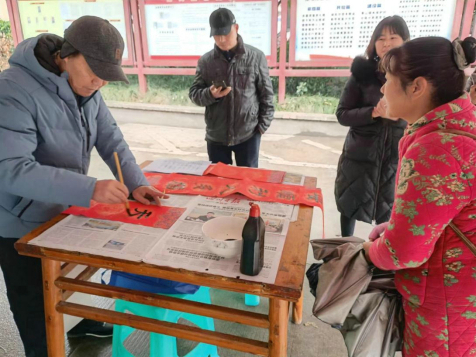 不一会儿,一句句散发着清新墨香的喜庆吉祥语跃然纸上,满载着祝福与希望的春联陆续送到群众手中,大家喜悦之情溢于言表。本次活动共为群众义写春联40多幅。