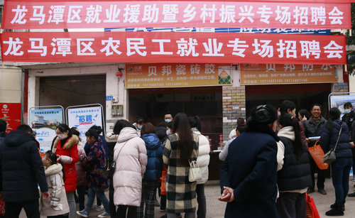 四川新闻网消息 为帮助高校毕业生、脱贫劳动力、农民工等就近就地就业,提供更精准的就业服务,日前,龙马潭区就业援助暨乡村振兴专场招聘会、龙马潭区农民工就业专场招聘会在金龙镇举行,闻讯而来的求职者们一早便到达了现场,近200人参与到此次招聘会中。