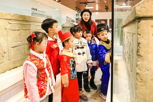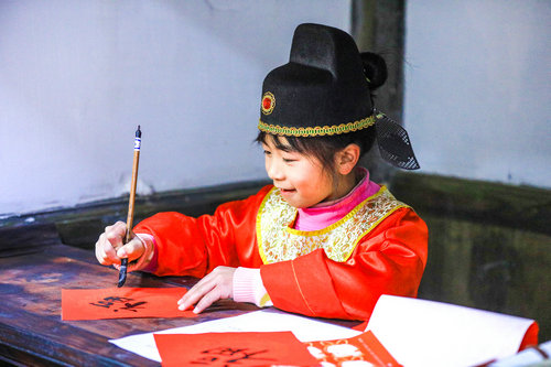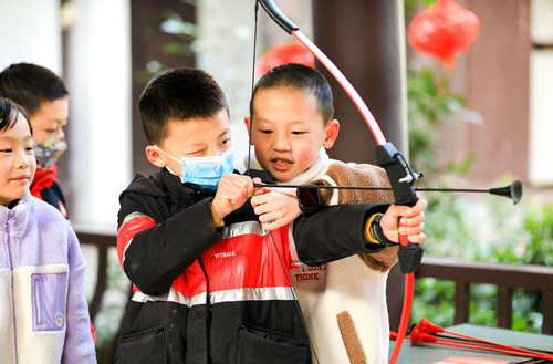 张灯结彩的博物馆里,参观东汉时期汉棺展品,身穿状元服书写祝福语,体验中国传统打弩、射箭、投壶等,让孩子们真切感受中国传统文化的独特魅力。(供稿:合江县委宣传部 李贵平 朱玉梅)