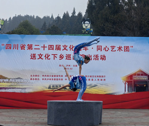 四川新闻网消息 (赖亦涵 记者 程海英) “好年好月好时光......”悠扬的苗家拦门酒歌和欢快的芦笙乐,一碗碗苗家人自己酿造的苗家米酒,吸引着人们走进古蔺县箭竹风景区。2月2日,第二十四届“文化列车·同心艺术团”送文化下乡巡回演出队伍开进古蔺县箭竹苗族乡大黑洞景区,为当地群众带来一场文化盛宴,现场掌声不断,欢声雷动。