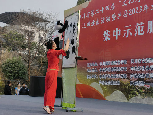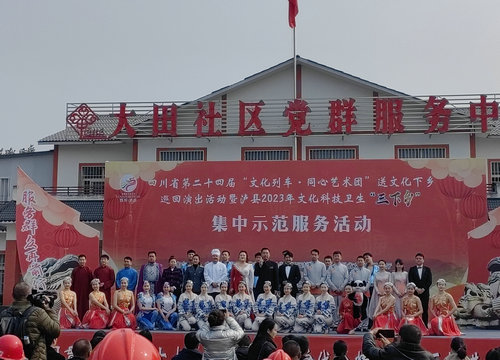 四川新闻网消息 (赖亦涵 记者 程海英) 2月3日上午,四川省第二十四届“文化列车·同心艺术团”送文化下乡巡回演出来到“中国龙文化之乡”——泸县。歌舞曲艺、相声小品、杂技绝活等在泸县福集镇大田社区轮番上演,点亮群众心中的文化之灯,共同奏响一曲文化交响乐。
