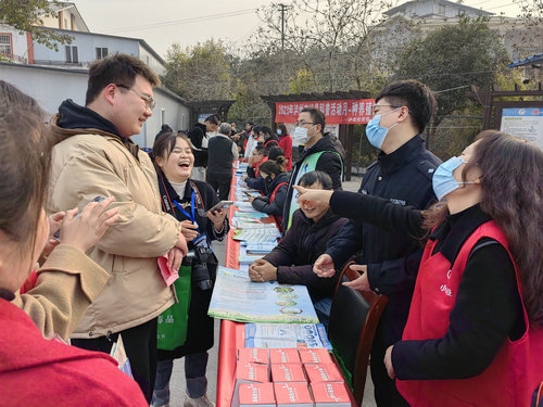 除了为福集镇群众送文化、送欢笑,县应急局、县司法局、县团委等23个县级部门还在巡演现场搭建服务台,为群众送上教育、科技、书籍、健康宣传等服务。在县团委服务台前,一场最友好的知识竞赛活动正开展得如火如荼。“答对一个问题就可以领走一个保温杯。如果当时答不上,我们也允许参与人员先在网上搜索答案,熟记以后再来回答问题。”工作人员莫小燕介绍道。借助这种方式,群众在浓浓的获得感中得到了科学知识普及,现场参与人员个个喜笑颜开。