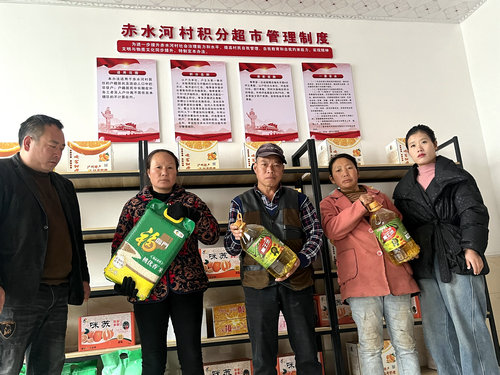 积分兑换活动现场,准备了洗衣液、纸巾、牙膏、食用油、大米、应季水果等礼品。“用积分制来推动移风易俗已经搞了一年了,我现在不仅自己积极参加移风易俗各项活动,还带动身边人一起参加。”兑换到洗衣液的朱玉楷开心地说。