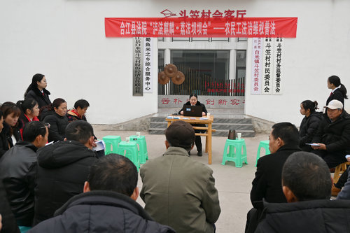 四川新闻网消息 为提高农民工的法治意识,2月3日上午,合江县法院“泸法麒麟·蒲公英”普法志愿者来到合江县白米镇斗笠村村委会,以“泸法麒麟·荔法坝坝会”活动形式,专题为村民讲解农民工维权法律知识。