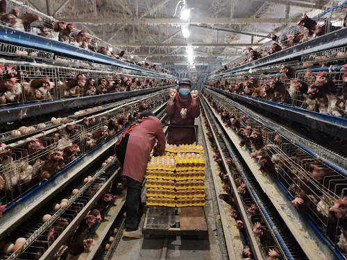 “我们流转土地2000平方米,投资500万元,建成了养殖规模5万只,年产鲜鸡蛋100万枚的现代化蛋鸡养殖场,产品主要销往成都、重庆和泸州等地区,实现年收益800万元。同时,我们与相邻的200亩林下土地养殖集体抱团发展,形成了产业链规模效益。由于我们生产的鸡蛋品质优良,有许多客商主动上门合作,可以说供不应求。为提高优质鲜鸡蛋产量,我们计划在今年内购入传送带、全自动拣蛋机、包装机等设备,让科技赋能,实现产业高质量发展,为乡村振兴注入新活力。”合江雨源家禽养殖专业合作社负责人王彪介绍道。