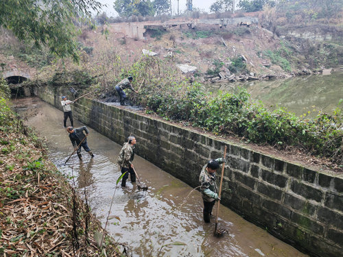 四川新闻网消息 清淤引水正当时,通渠保灌助春耕。2月15日,在泸县兆雅镇燕岩村毛家岩水库除险加固工程现场,工人们师傅们正在对大坝进行最后护坡扫尾,而几名村民正在对渠道进行清淤、清除杂草等。