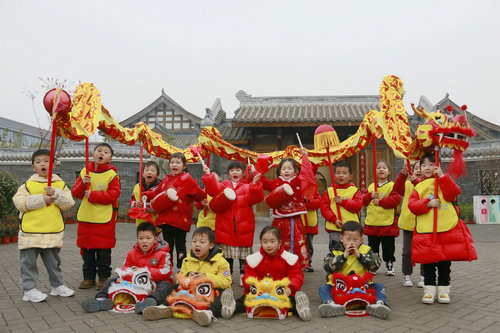 在老师的带领下,孩子们还完成了舞狮、舞龙、画“龙”等一系列传统民俗活动。“老师说今天是二月二龙抬头,要祈祷风调雨顺,所以我们做了舞龙。” 王玉臣开心地说。