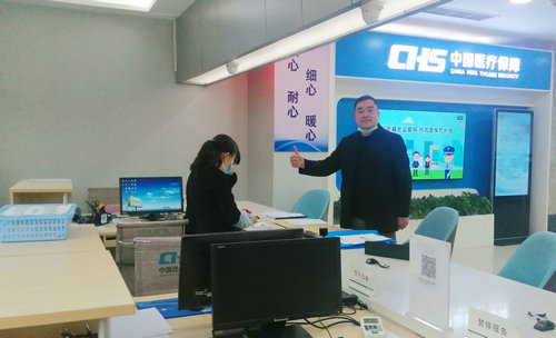 同样令人暖心的情况也出现在了医保窗口。2月13日中午,正逢大厅窗口工作人员就餐休息时间,步履匆匆的肖先生来到医保窗口,要为其父亲代办特效药报销事宜,医保窗口工作人员邹琴、陈俊见状随即回到工作岗位,耐心细致地为其清理报销所需资料。考虑到肖先生在外地工作,来回奔波不便,就缺少的部分非关键性材料,经窗口人员与相关部门协调沟通采取容缺办理,顺利为肖先生办理业务。