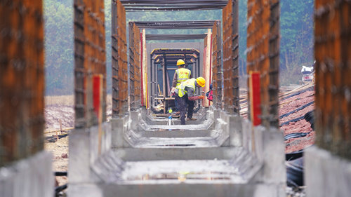 四川新闻网消息 2023年2月24日,在位于四川省泸州市龙马潭区双加镇的隆黄铁路(隆昌至叙永段)扩能改造工程项目现场,工人们正在进行钢筋绑扎作业。