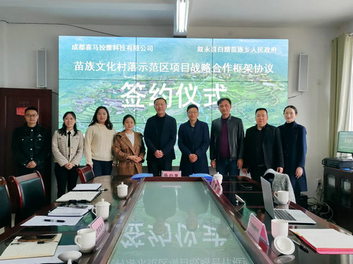 四川新闻网消息 3月25日,白腊苗族乡人民政府、成都喜马拉雅科技有限公司就白腊苗族乡苗族文化村落示范区项目签订战略合作框架协议,县投资促进中心党组书记、主任刘永奎,县文广旅局旅游发展服务中心副主任单娟出席会议。