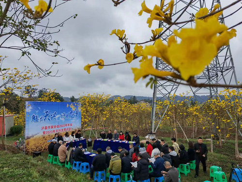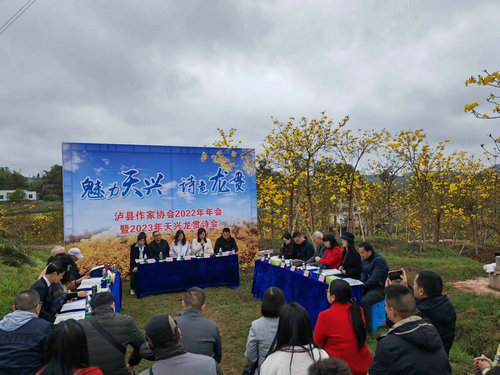 四川新闻网消息 “玲木生金灿日华,吟诗作画聚方家。龙乡福地是何处?至美天兴不自夸。” 3月25日,泸县作家协会2022年年会暨2023年天兴龙贯诗会在天兴镇志城村黄花风玲木基地召开,泸州市文联党组成员、秘书长、市作家协会主席张蓉,天兴镇党委副书记、镇长罗云,泸州市作家协会名誉副主席,著名儿童文学作家肖体高,泸州市作家协会副主席、著名诗人涂拥,泸州市作家协会副主席、泸县作家协会主席邓晓波,泸县文联专职副主席孙尚萱及龙马潭区作协、泸县作协、泸县龙城诗社、泸县美术家协会的会员、作家参加活动。