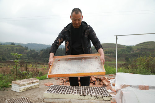 合江县农业农村局农艺师万有程说:“漂浮育苗播种器是我们根据漂盘自行设计的,我们去查阅了很多蔬菜,还有其他农作物的播种器具,自己根据漂盘的特性,多次实验研究出来的,它的播种效率提高了无数倍,以前手工的话要10多分钟播种的,现在就只要5秒钟就可以完成了。”