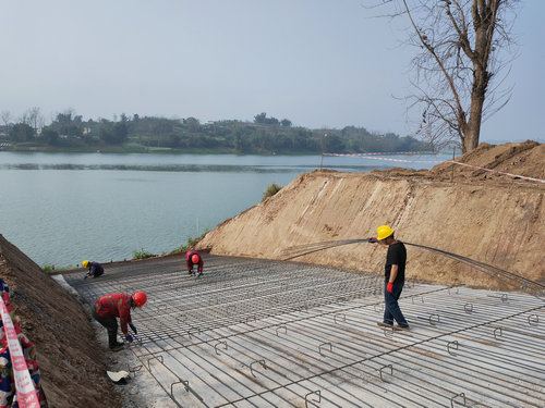四川新闻网消息 3月30日,在泸县西部抗旱抢险救灾补水工程里程滩灌区建设项目海潮镇小白村1社沱江取水施工现场,工人师傅们正在抢抓工期,对泵房基础设施进行建设。