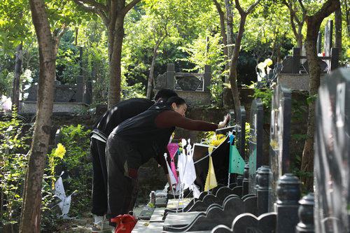 市民龙亚丽说:“我来笔架山公墓祭奠父母,带了鲜花和水果,不像以往一样带香烛钱纸,现在大家都带鲜花和水果祭奠去世的亲人,比以前环保卫生。”