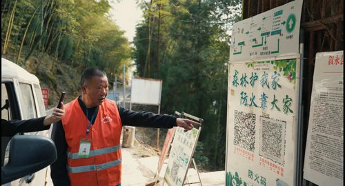 “您已进入重点森林防火区,请主动扫码进山,自觉交出火柴、打火机,禁止携带火种入山……”在叙永县玉皇观森林防火检查卡口,红外线感应宣传小喇叭适时播放宣传,提示行人严格遵守森林防火规章制度。