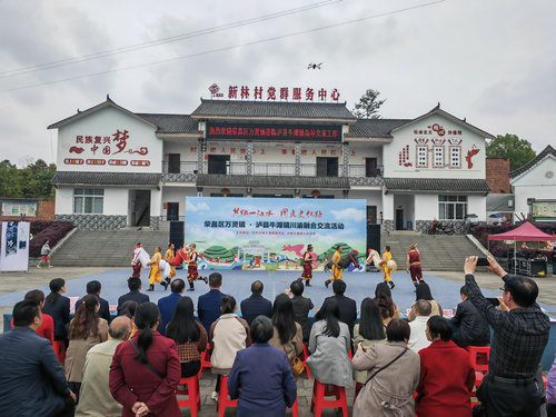 荣昌区万灵镇党政代表团到牛滩镇考察了观斗山产业园、生姜高粱轮作产业园,还新林村文体广场进行文艺交流。观看了牛滩非遗马儿灯、荷花龙、扎染等非遗表演,也欣赏《寻龙》《龙魂》《丰收》等反映泸县龙文化的歌舞表演。