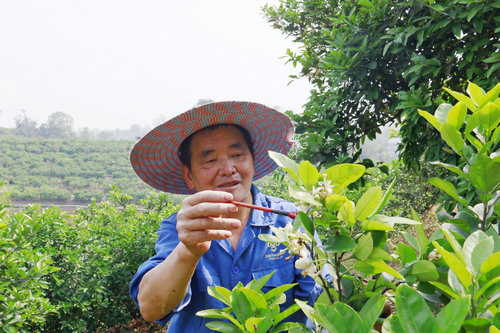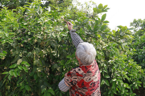 “相较于同花授粉,异花授粉可使结果率提高一倍多,同时,果子能长得更加饱满,在口感上也更加甘甜细腻。”泸州市龙马潭区九狮柚专业合作社负责人袁德清介绍,柚子树开花以后,花期只有一周左右,单靠自然授粉的方式挂果率较低。经过近几年的实践,在优化花粉配比的同时,采用异花授粉的方式,不仅大大提高了授粉效率,也让挂果率得到明显改善。经过技术人员的指导和讲解,基地内所有农户都能熟练掌握异花授粉的操作要领。