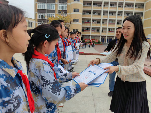 活动当天,泸县人民检察院副检察长商晟、泸县民族宗教事务局副局长杨波、致公党泸县基层委员会主委罗冠英、致公党泸县基层委员会副主委胡博,嘉明镇党委委员、政法委员卢瑶与嘉明小学校党支部书记胡开富一起为获得“2022年小善叔叔信箱公益项目征文比赛”名次的同学们颁发了证书和奖品。(供稿:泸县县委统战部 致公党泸县基层委员会 吴鹏程)