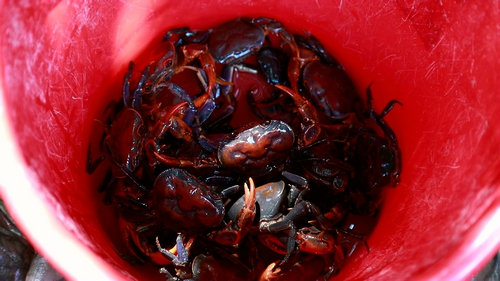 四川人把小溪里生长的野生螃蟹叫做“山螃蟹”,是大山独有的美味。每年春夏之交气温逐渐回暖时,就是山螃蟹生长的时候,它在雨后大量爬出来觅食,在溪边的石头旁很容易找到,据村民施晓勇介绍,山螃蟹虽然小,但是生长的环境十分干净,是小时候和小伙伴们改善伙食的一道好菜,最鲜美的吃法就是用螃蟹和鸡一起炖煮。