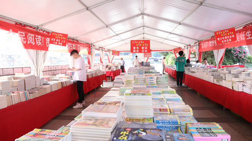 这个惠民图书展,真是太好了,不仅书籍种类丰富,优惠力度还特别大。”4月22日,市民顾天霞来到龙马潭区全民阅读活动第五届惠民图书展会现场,为自己的孩子购买书籍。活动现场,文学名著、科普读物、通俗小说、儿童画册等1000余册图书分类堆放,吸引着路过的市民前来阅读和购买。