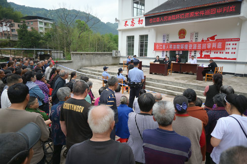 四川新闻网消息 为提高广大群众生态环境保护意识,共同守护美好家园,4月20日,合江法院充分发挥审判职能,前往市级自然保护区福宝镇开展巡回审判,分别在燕口村、骑龙村审理了两起非法猎捕陆生野生动物罪案件。随着法槌声响,庭审正式开始,两起案件审理现场均吸引了当地近百名群众“围观”。