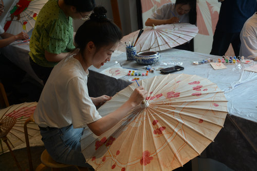 为深度体验油纸伞制作工艺,40余名干警在油纸伞博物馆老师的讲解和指导下,认真为自己的油纸伞上色。