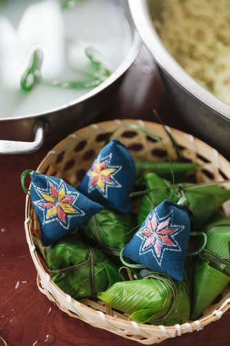 在四川省古蔺县箭竹苗族乡,苗家阿姐们正在一起忙碌着包粽子、缝制蜡染“粽子香囊”。据了解,箭竹蜡染“粽子香囊”所用的是中国民间传统非物质文化遗产纺织蜡染技艺。处理过后的蜡染土布,绘制上苗族传统图案,再用刺绣点缀上不同的颜色,风格独特。随后填充好棉花和中草药,缝制成粽子模样,和食用粽子放在一起相得益彰,端午气息浓浓。“这是苗家蜡染粽子香囊,它用了蜡染技艺,在蜡染基础上用刺绣对其进行点缀,让它颜色更好看,它不仅有安神驱蚊作用,还有传达情谊,寄托祝福等美好寓意”。古蔺县箭竹苗族乡蜡染技艺人侯松介绍说。