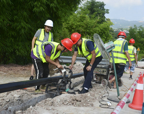 “我们自筹资金120万元加快项目建设,从现场测量、设计规划、用地协调、费用预算、技术交底到进场施工,不到一个月的时间里,永定村项目已完成安装PE110管3800米、PE75管1610米、PE50管2000米、PE32管800米,累计完成总长度的83.3%。”泸县顺通水务有限公司工程项目办主任徐敢介绍道。