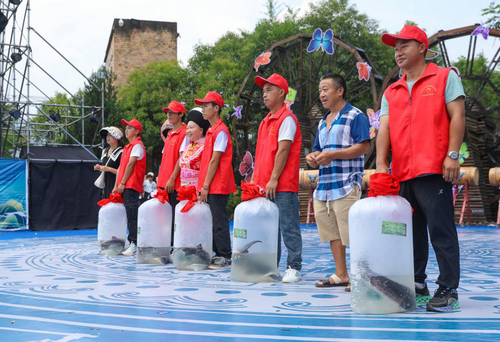 咸香四溢的苗家腊肉,新鲜肥美的箭竹冷水鱼鲟鱼,活波乱跳的本地山羊……这些极具箭竹苗乡特色的奖品吸引了观众的注意力,也将开幕式的氛围推向高潮。
