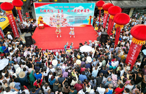 四川新闻网消息 9月11日,伴随着悠扬芦笙声,踏着动感的舞步,泸州市古蔺县丹桂各族同胞从四面八方赶来,共同见证丹桂主题为“民族团结一家亲,同心共筑中国梦”的民族场活动,欢快激昂的音符、心潮涌动的乐章响彻全场,传统文化之花、民族团结之花在丹桂这片红色热土上美丽绽放。