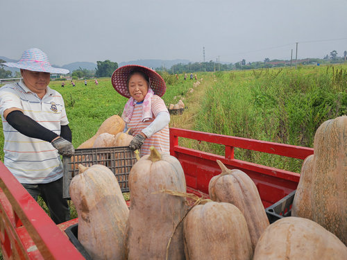 暑去秋来收获季,田间地头人繁忙。在泸县嘉明镇的蔬菜基地,四百余亩的南瓜已经成熟。趁着晴好天气,村民们在田间地头忙着采收南瓜,四处呈现出一派繁忙的丰收盛景。