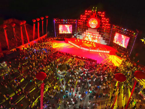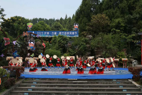 除了东部举办火把节,位于古蔺西大门的箭竹苗族乡也“不甘落后”。8月18日,“浪漫箭竹·风情之旅”2023泸州•古蔺•箭竹苗家风情节在古蔺县箭竹苗族乡大黑洞景区盛大开幕。开幕式文艺展演从外部氛围、节目、舞台造型等充分体现苗族的文化特色。8月18日至22日,箭竹苗族乡先后举办了篝火晚会、大雄村露营音乐会、“幸福苗乡”自由垂钓邀请赛、熊孩子酷跑、箭双人车接力赛、汆洞沟徒步旅拍、“苗乡情缘·爱在蔺州”大型相亲晚会、“七夕结缘·爱在苗乡”情感主题篝火晚会等多个大型活动,让群众及游客在“观美景、品美食、避酷暑、享清凉”中不断提高获得感、幸福感和满意度,不断增强箭竹的知名度、美誉度和影响力。